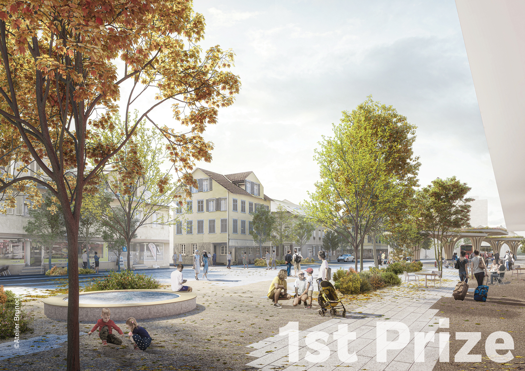 Neuorganisation Bahnhofplatz und Poststrasse, Amriswil. 1. Rang, 2020