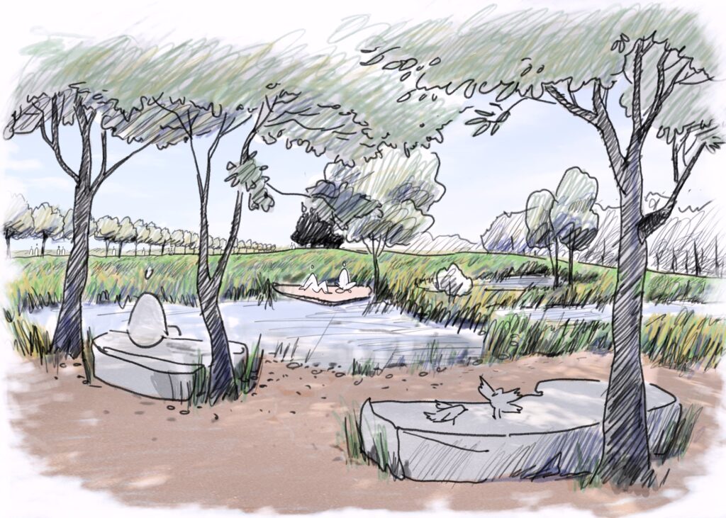 Im Rahmen des Wettbewerbs haben wir Möglichkeiten untersucht, einen zeitgemäßen, inklusiven und nachhaltigen öffentlichen Raum zu entwickeln, der bestehende Grünflächen vernetzt und neue Möglichkeiten für Begegnung, Erholung und Naturerlebnis schafft.