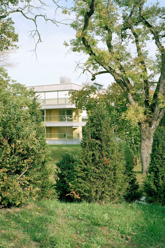 Das Grundstück zeichnet sich durch einen gut erhaltenen, vielfältigen Baumbestand aus, der dank eines sensibel entwickelten architektonischen Konzepts weitgehend bewahrt werden konnte. Die Baukörper integrieren sich harmonisch in eine Landschaft, die wesentliche Merkmale eines klassischen Parks aufweist: einen alten und artenreichen Baumbestand, großzügige Wiesenflächen sowie eine klare Einfriedung – ein zentrales gestalterisches Element, das den Park von einer offenen Kulturlandschaft unterscheidet.